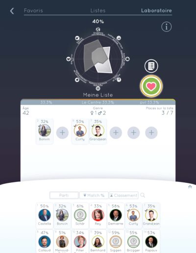 Swipe parmi les candidats, fais ton classement, édite des listes par glisser-déposer et découvre qui a été élu. Cela semble simple? C’est vrai!